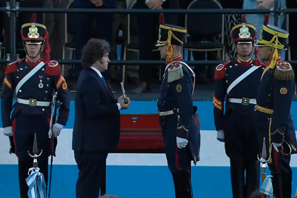 La histórica arma, que durante décadas estuvo en exhibición en el Museo Histórico Nacional de Buenos Aires, fue retirada de ese espacio tras un decreto presidencial y trasladada bajo custodia del regimiento. Milei sostuvo que el sable “no es un objeto histórico más”, sino “probablemente el símbolo material más poderoso de la Nación argentina” y una representación de la libertad y soberanía nacional.
