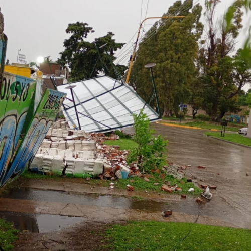 Durante la jornada de este jueves, una intensa tormenta con fuertes ráfagas de viento afectó varias zonas del partido de Tres Arroyos. En particular, el estacionamiento ubicado en el barrio de Villa del Parque sufrió daños significativos: la estructura metálica que cubre el predio quedó invertida sobre el paredón que la rodea.