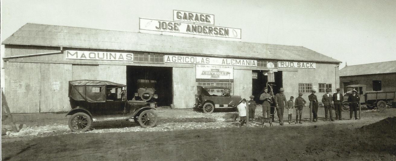 Se muestra en las fotos a José Andersen y su familia, y el establecimiento que representaba a las marcas más importantes de aquella época con vistas del exterior y el interior del mismo.