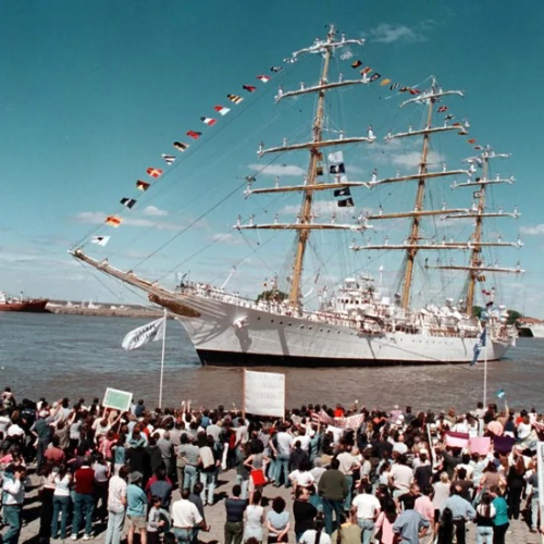 El arribo se produjo alrededor de las 9 de la mañana, escoltado por embarcaciones menores, con la bandera argentina desplegada en los tres mástiles.  En el muelle de Puerto Madero, familiares, exmarinos, autoridades y cientos de personas esperaban para recibir a la tripulación. El reencuentro estuvo lleno de emoción: abrazos, lágrimas y alegría marcaron la escena.