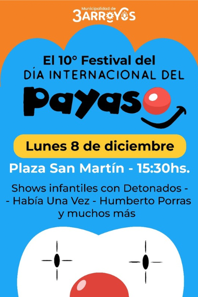 Dicho evento se llevará a cabo en la Plaza San Martín a partir de las 15.30 y contará con la presentación de los payasos Detonados, la compañía Había una Vez y el payaso Humberto Porras. Se invitan a las familias a acercarse a compartir una tarde de mucho color, risas, juegos, golosinas y sorpresas. También se invita a todos los que quieran sumarse vestidos de payaso o con la ya reconocida nariz roja.